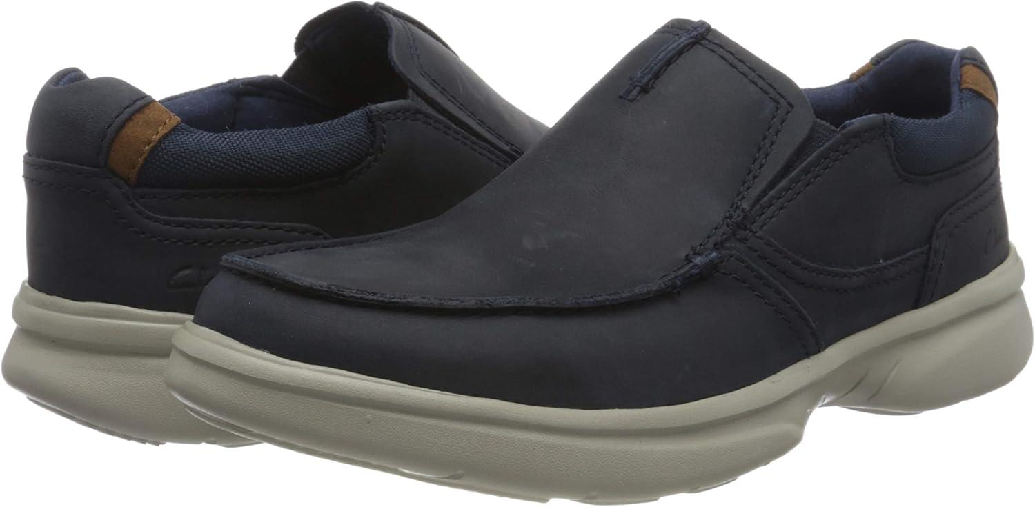 Clarks men the Bradley Free: This versatile slip-on shoe matches a full grain leather upper to a sneaker-style outsole made from lightweight EVA. A pair of subtle elastic gores provide a flexible, snug fit, and its Ultimate Comfort benefits include full-length cushioning and a moisture-wicking Ortholite footbed.