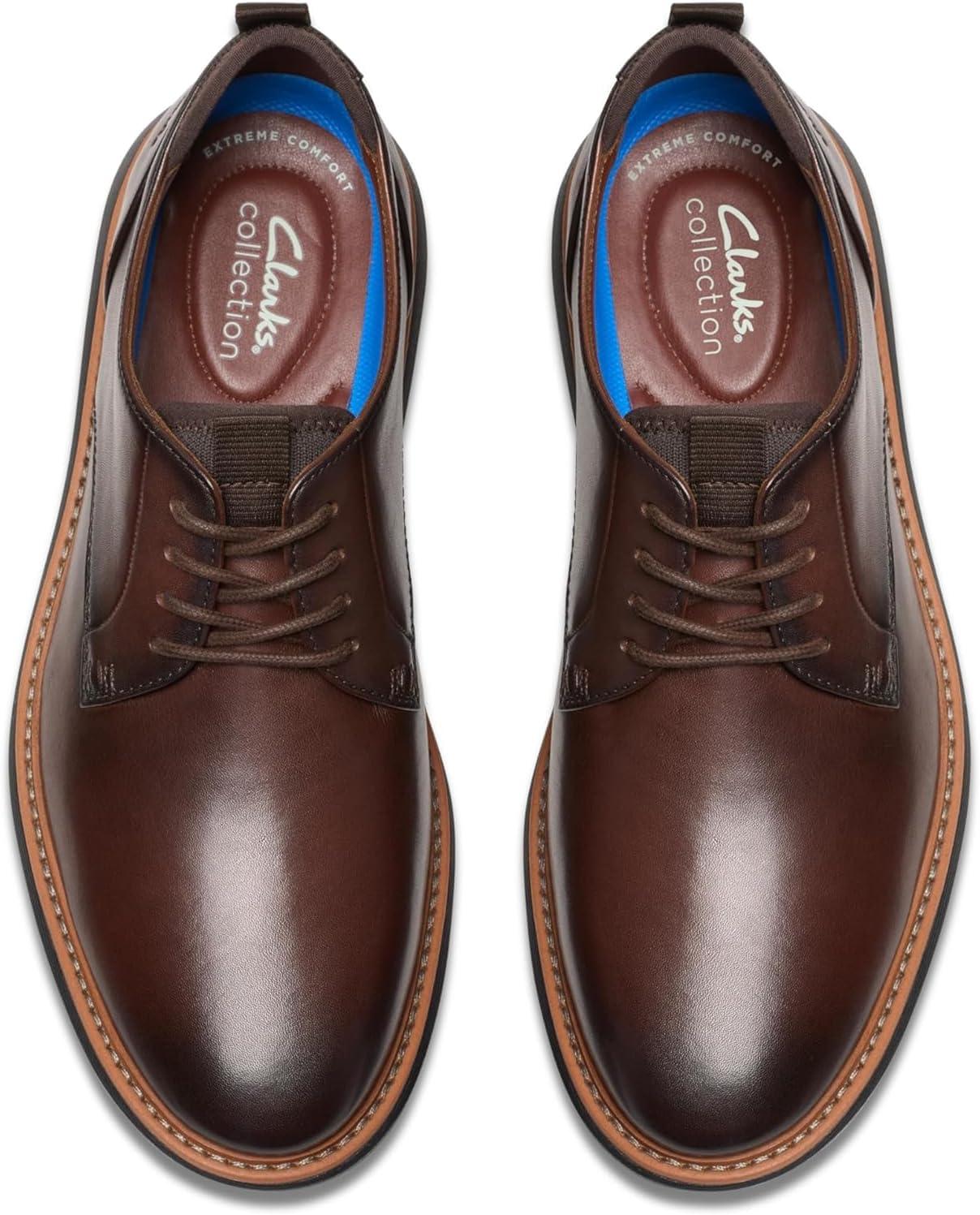 Clarks Men’s Brantin Plain Oxford(Dark Brown Leather)