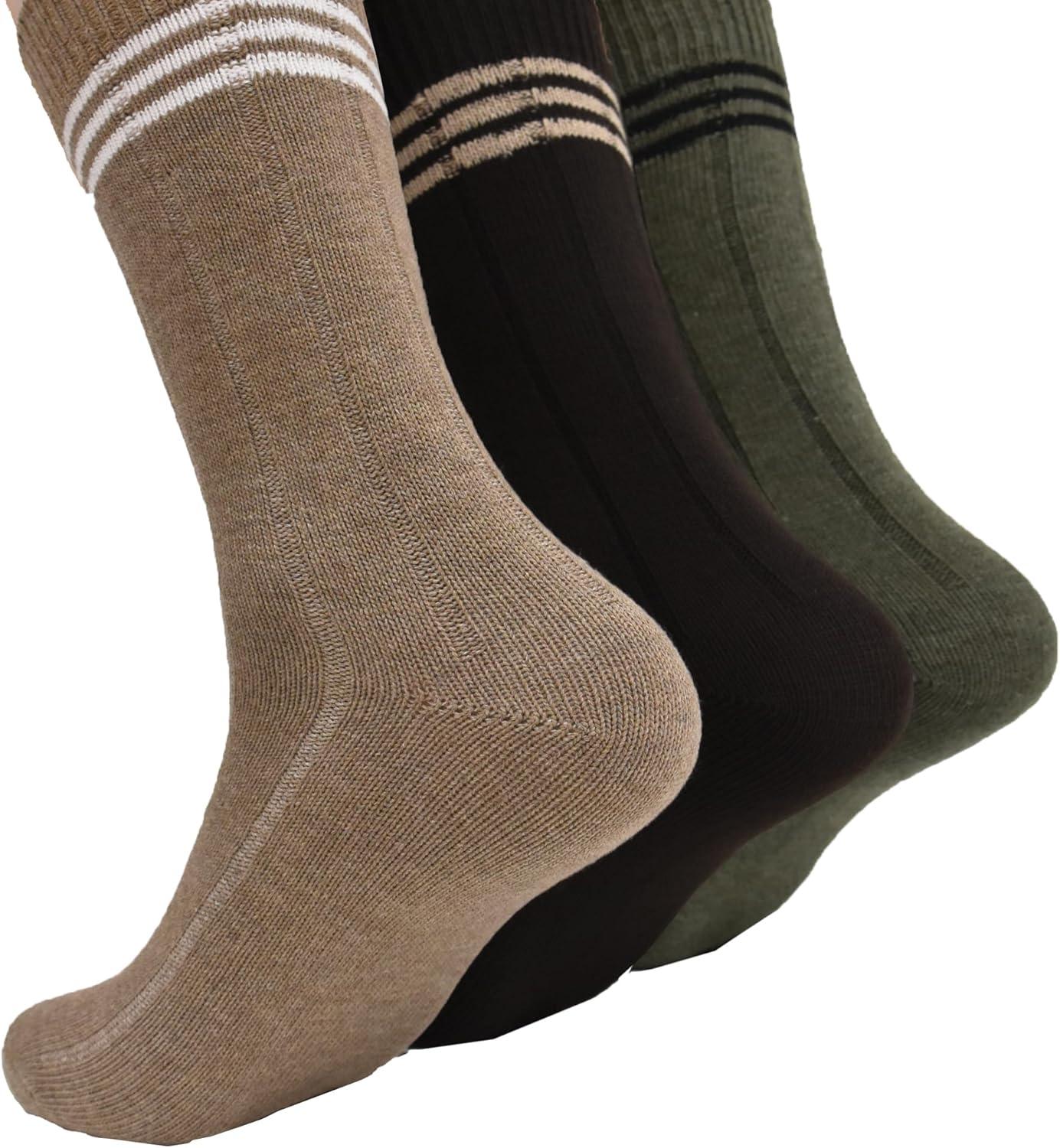 Clarks Men’s Casual Striped Crew Socks with Wide Rib 3 Pair, Brown/Khaki/Olive, Men’s 7-12 Shoe