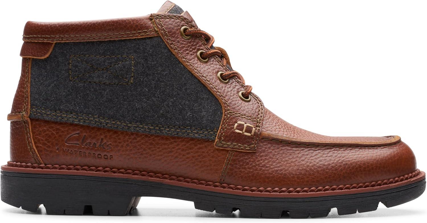 Muddy puddles and scattered showers are no match for Clarks Collection waterproof boot, Maplewalk Moc. A resilient blend of leather and waxed canvas prep its uppers for anything, while underfoot, a super-soft footbed pillows every move. We love it with jeans and a casual shirt, for an effortless fall/winter look you’ll turn to time and time again. – Durable, waterproof waxed tan canvas and tumbled leather upper – 6mm foam footbed delivers lasting cushioning – Hardwearing lugged rubber outsole