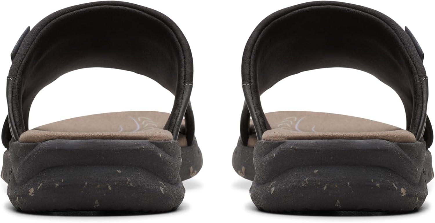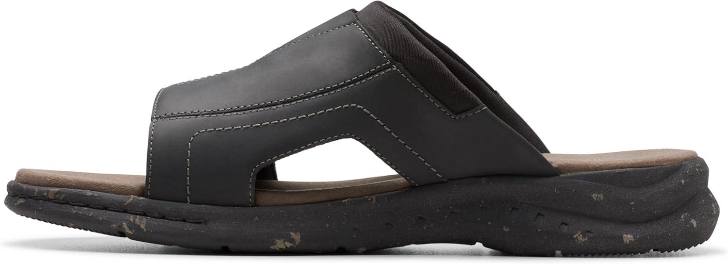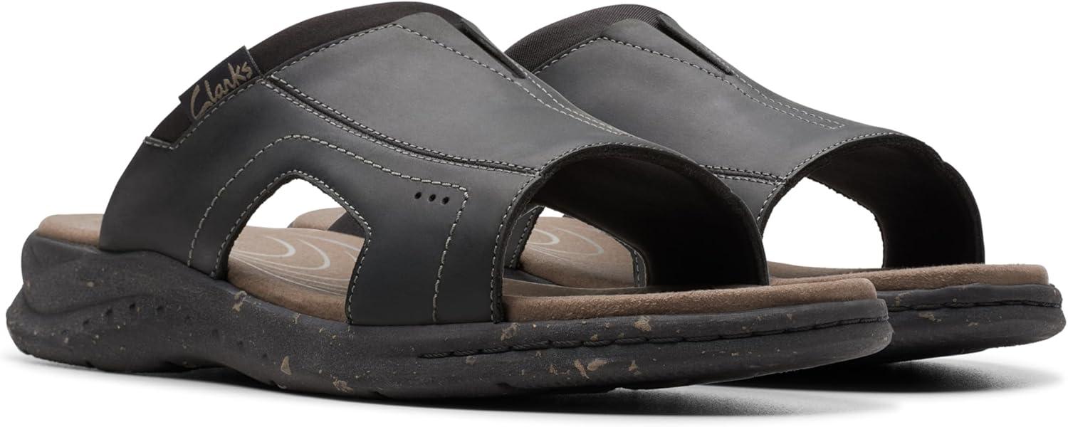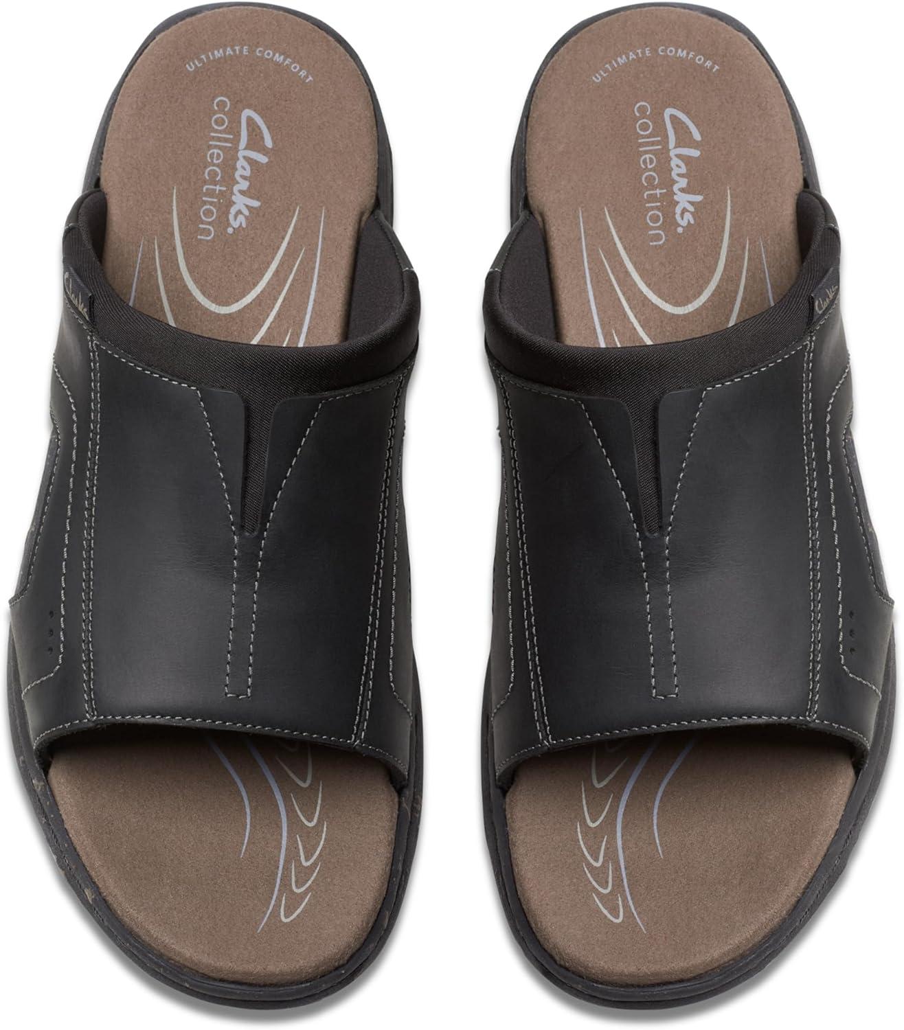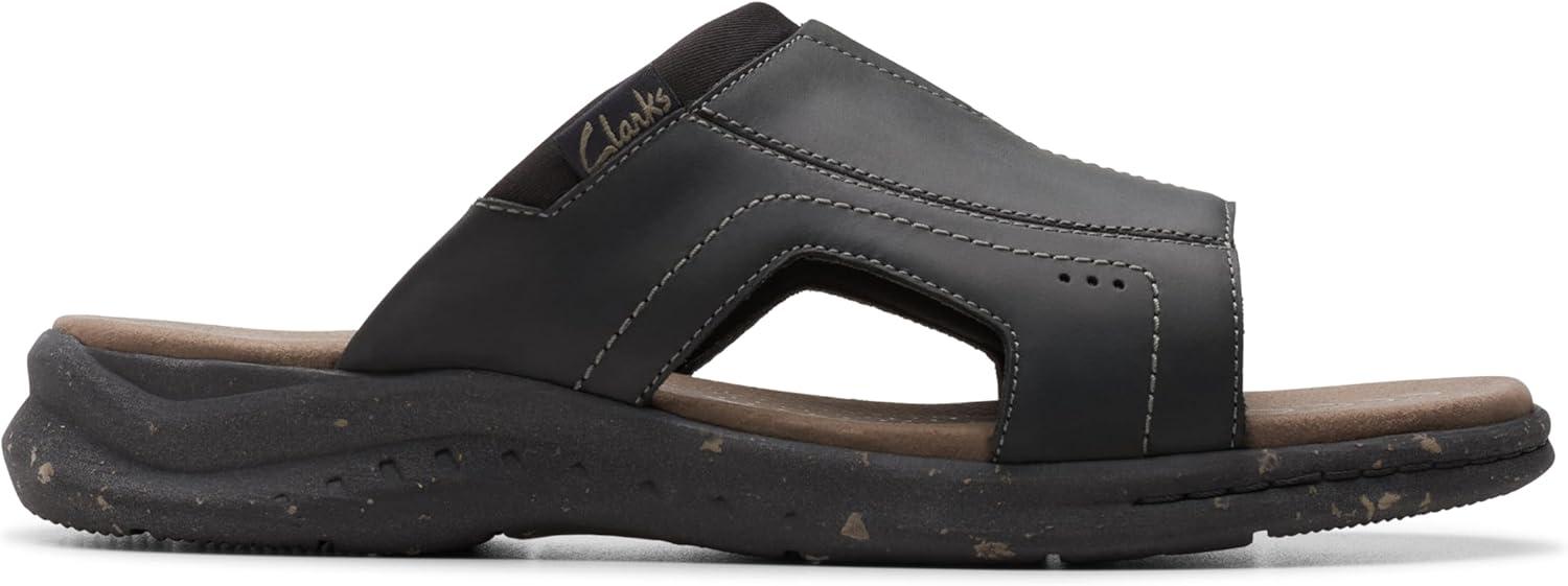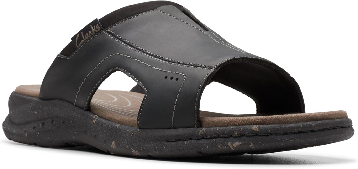 Clarks Men’s Walkford Band Slide Sandal(Black Leather)