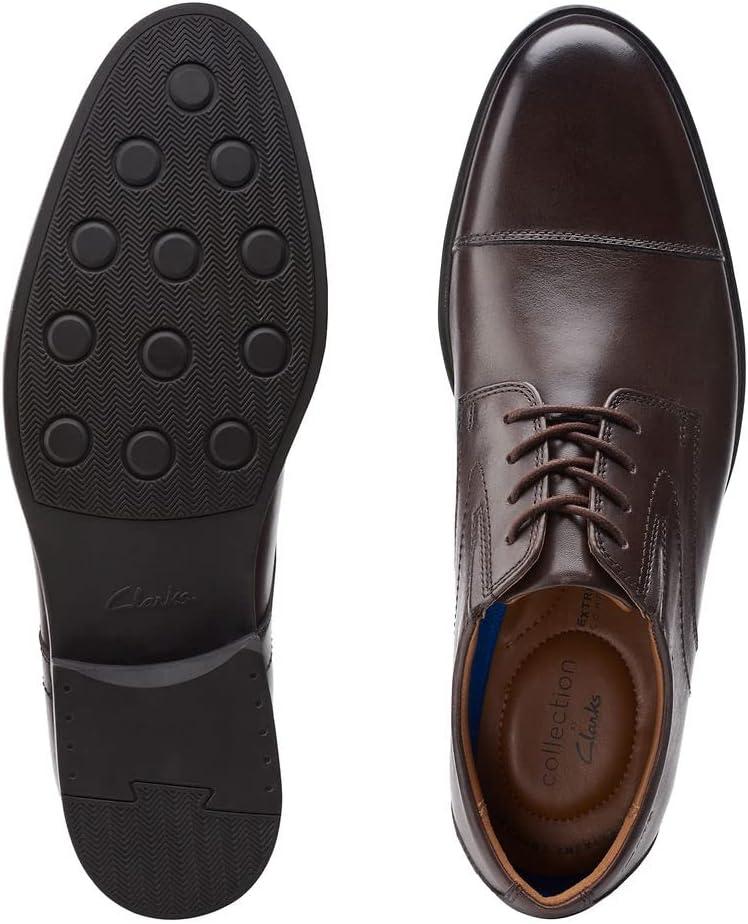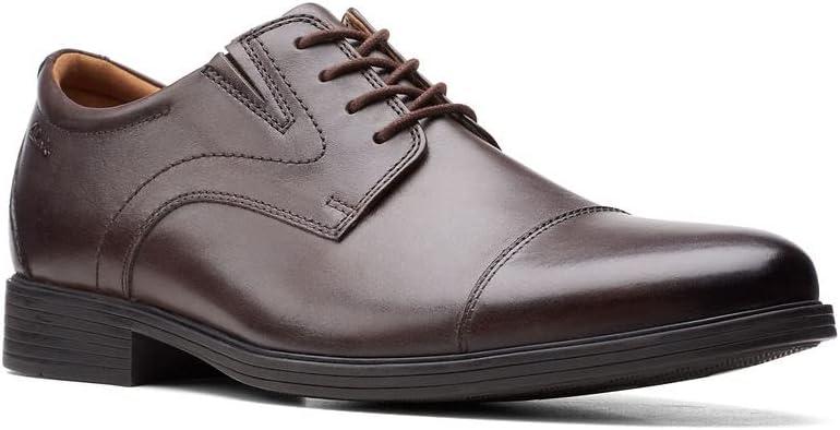 Clarks Men Whiddon Cap: This office-ready captoe style features a full grain leather upper and a pair of subtle elastic insets that ease its fit. As an Ultimate Comfort style, it benefits from full-length cushioning and a moisture-wicking Ortholite footbed.