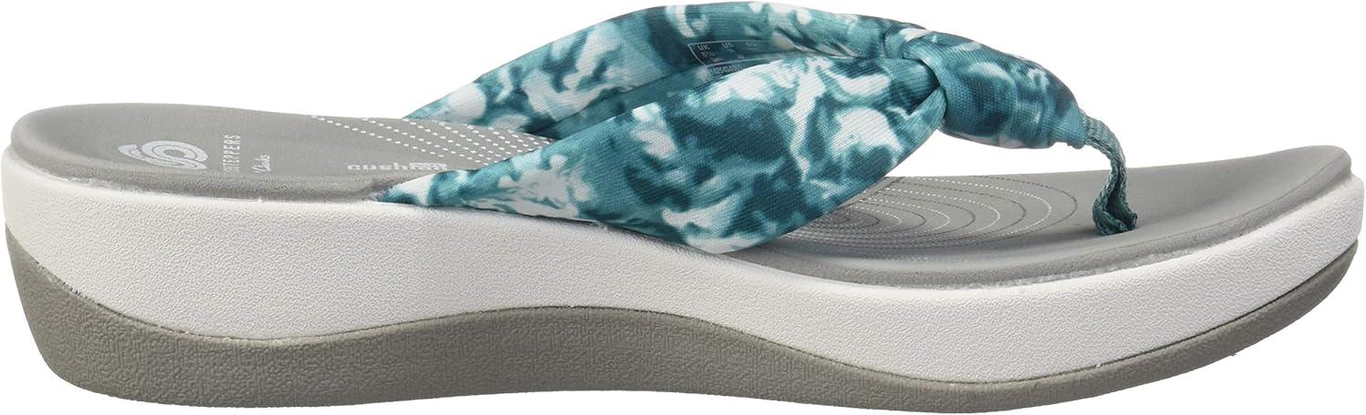 The Arla Glison from Clarks Cloudsteppers provides the best of comfort technology with classic feminine appeal. A fabric upper feels delicately soft between the toes, while an EVA midsole keeps the sandals feather light. The OrthoLite footbed with Cushion Soft technology ensures optimal comfort all day. An ultra-wearable flip-flop with no shortage of personality. Sole material TPR.