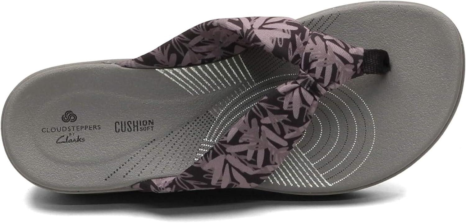 The Arla Glison from Clarks Cloudsteppers provides the best of comfort technology with classic feminine appeal. A fabric upper feels delicately soft between the toes, while an EVA midsole keeps the sandals feather light. The OrthoLite footbed with Cushion Soft technology ensures optimal comfort all day. An ultra-wearable flip-flop with no shortage of personality. Sole material TPR.