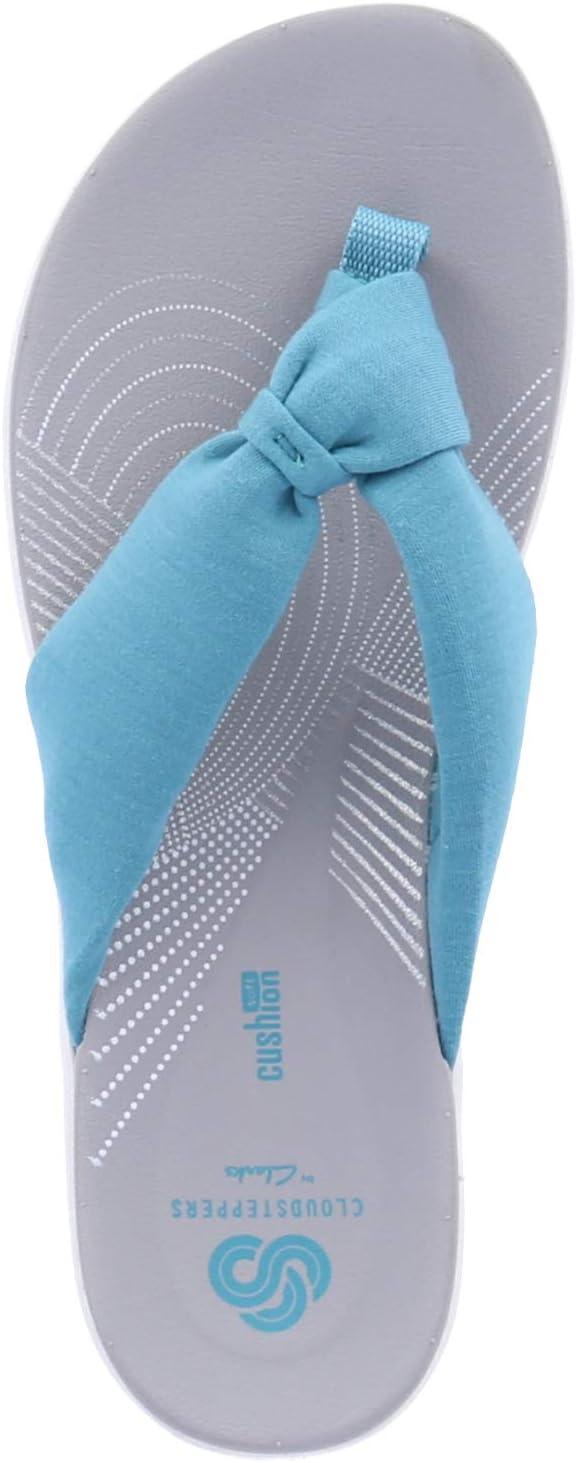 The Arla Glison from Clarks Cloudsteppers provides the best of comfort technology with classic feminine appeal. A fabric upper feels delicately soft between the toes, while an EVA midsole keeps the sandals feather light. The OrthoLite footbed with Cushion Soft technology ensures optimal comfort all day. An ultra-wearable flip-flop with no shortage of personality. Sole material TPR.