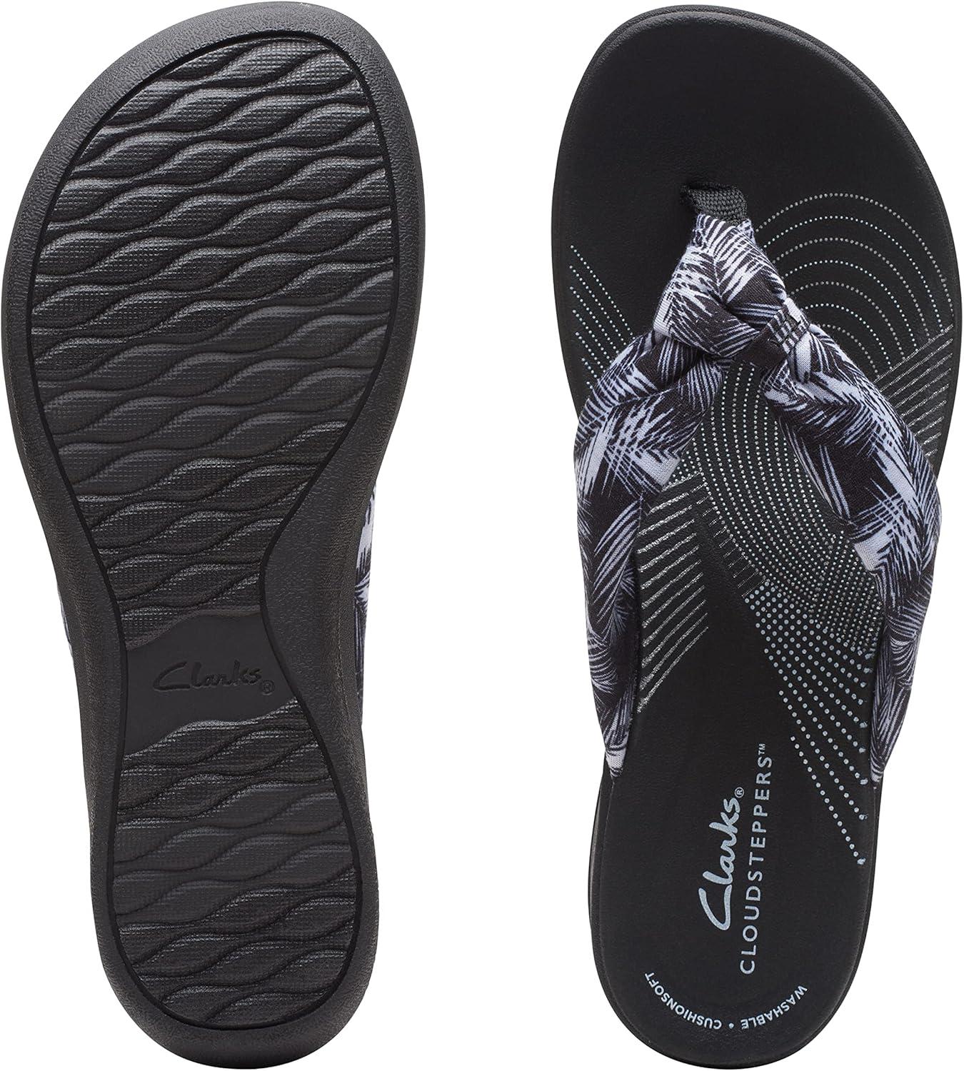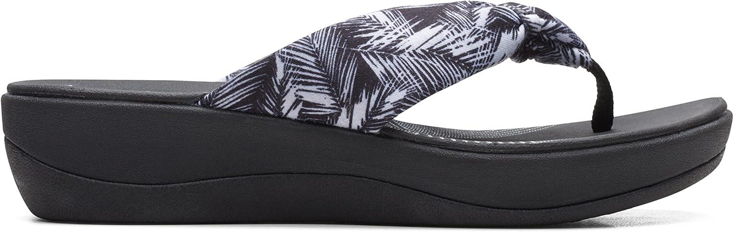 Clarks Women’s Arla Glison Flip Flop(White Palms Textile Black Sole)