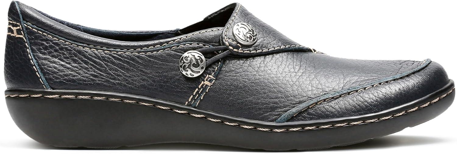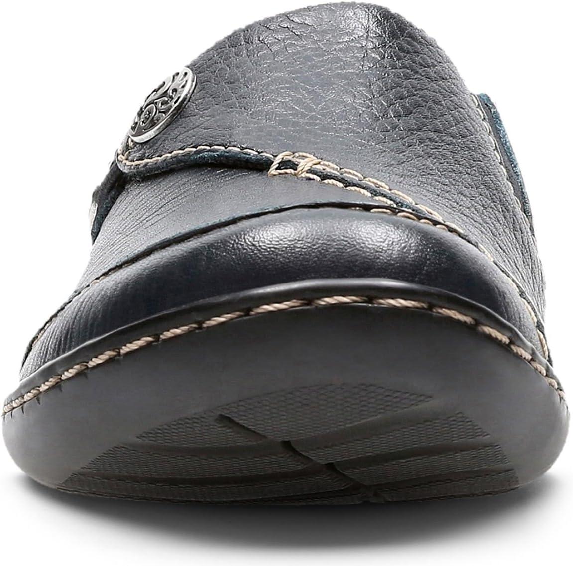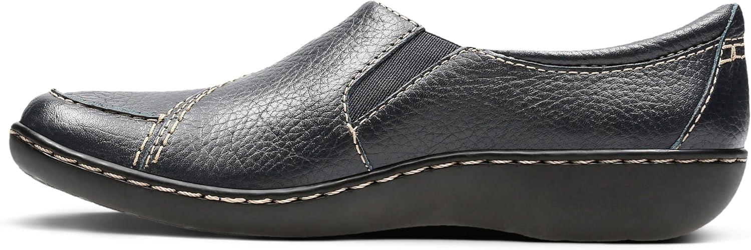 The ultimate in ease and wear ability, this classic slip-on shoe from the clarks collection is crafted of supple leather on a popular low bottom. incredibly comfortable, it features a stretch gore, fabric linings, and super flexible, lightweight tpr outsoles. this go-to women's shoe is an excellent choice for career or casual wear.