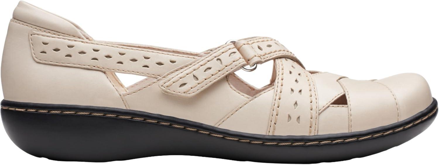 Beautifully constructed in soft leather with a low wedge for walking ease, this clarks collection shoe goes way beyond basic. an adjustable hook-and-loop strap, fabric linings, and super flexible, lightweight tpr outsoles cushion the foot in comfort.