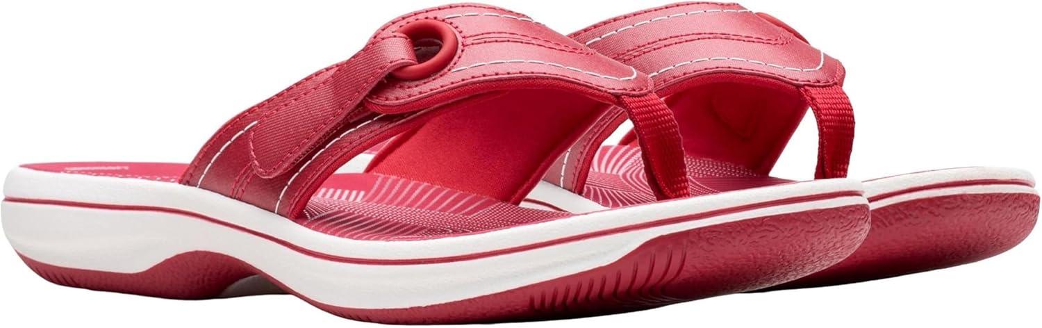 Clarks Women’s Breeze Reyna Cloudsteppers Flip-Flop(Cherry Synthetic)