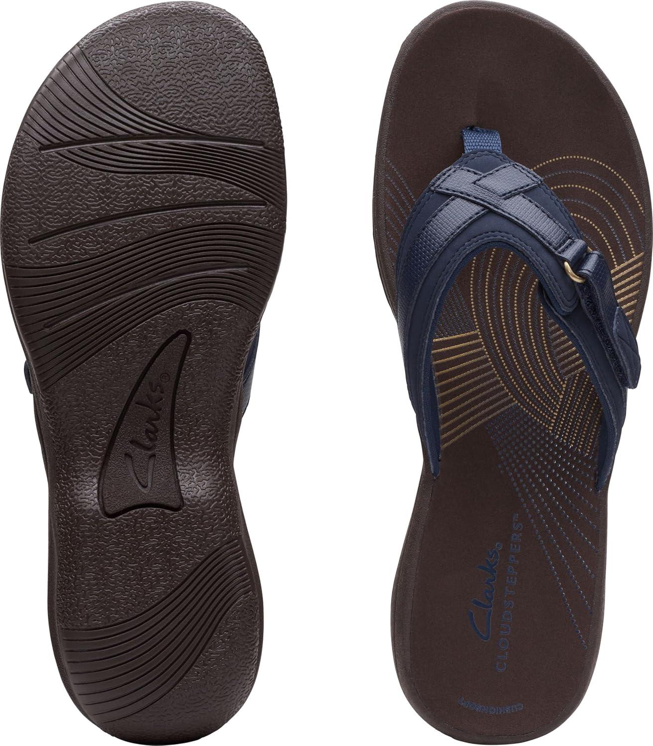 Clarks Women’s Breeze Sea Flip-Flop(Navy Synthetic/Brown Sole)