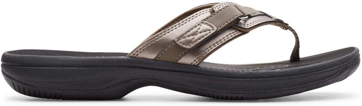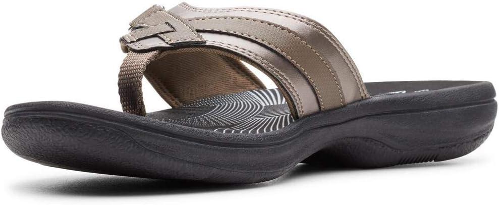 Clarks Women’s Breeze Sea Flip-Flop(Pewter Synthetic/Black Sole)