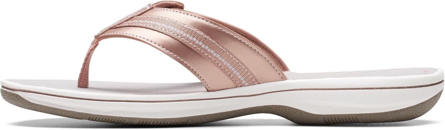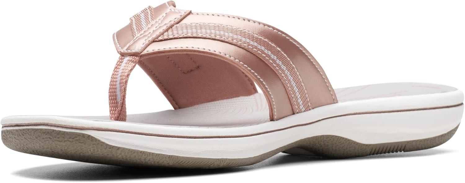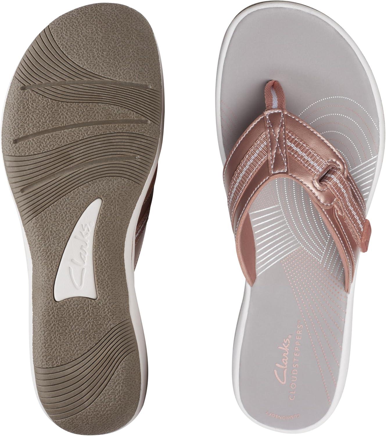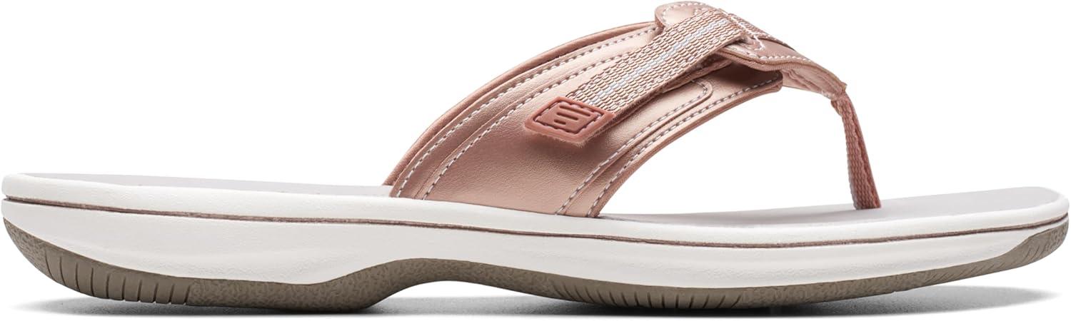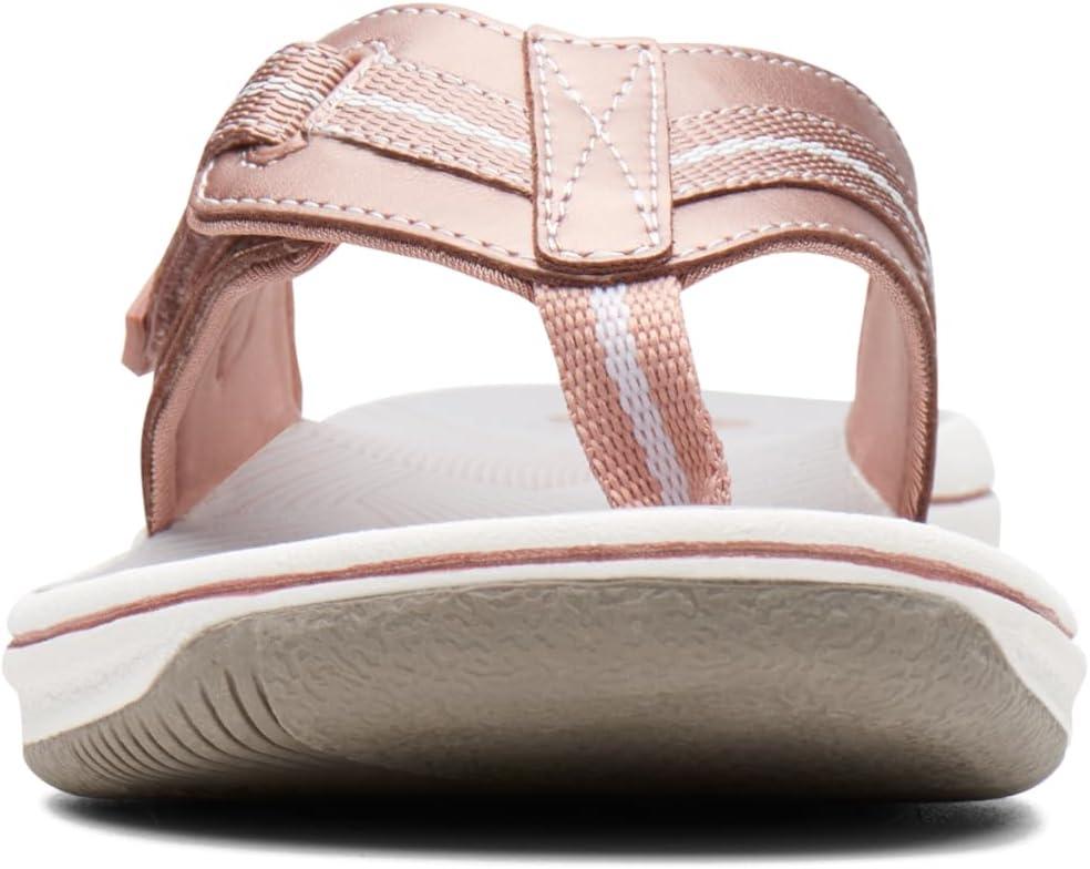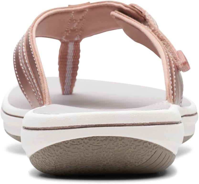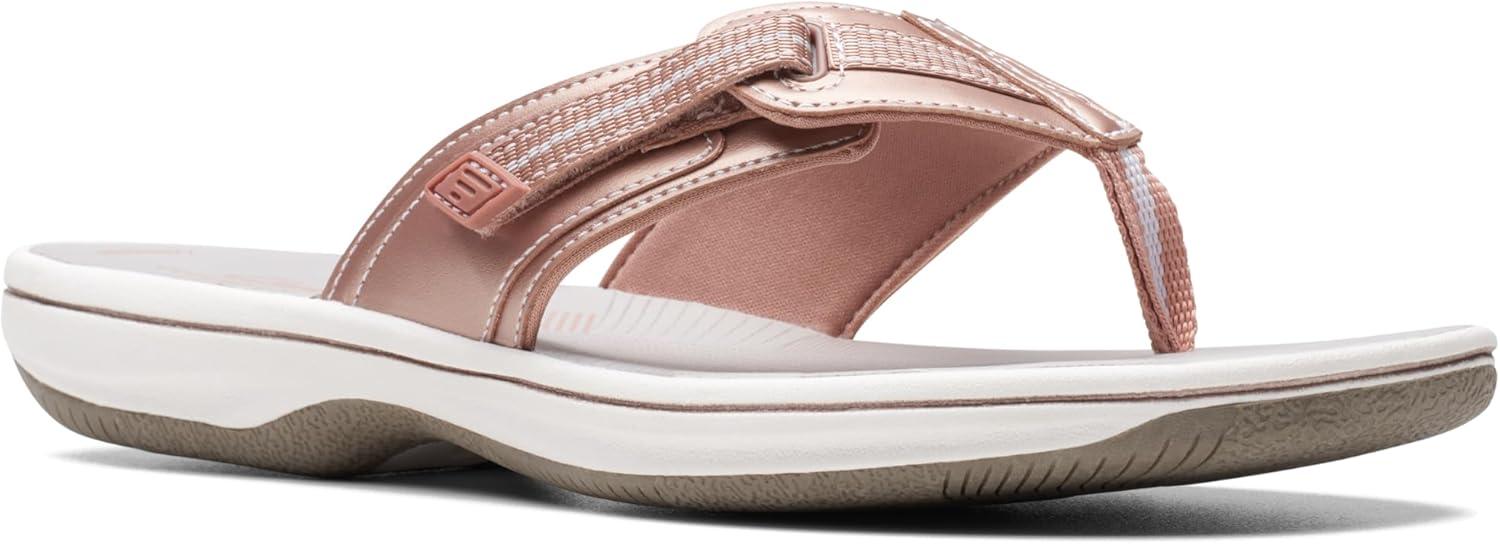 Choose this comfy flip-flop from the clarks collection for truly carefree summer dressing. offered in an array of colors with adjustable hook-and-loop closure, synthetic linings, printed eva footbed, and rubber outsole, this women's sandal brings a fun, beachy vibe to everyday wear.