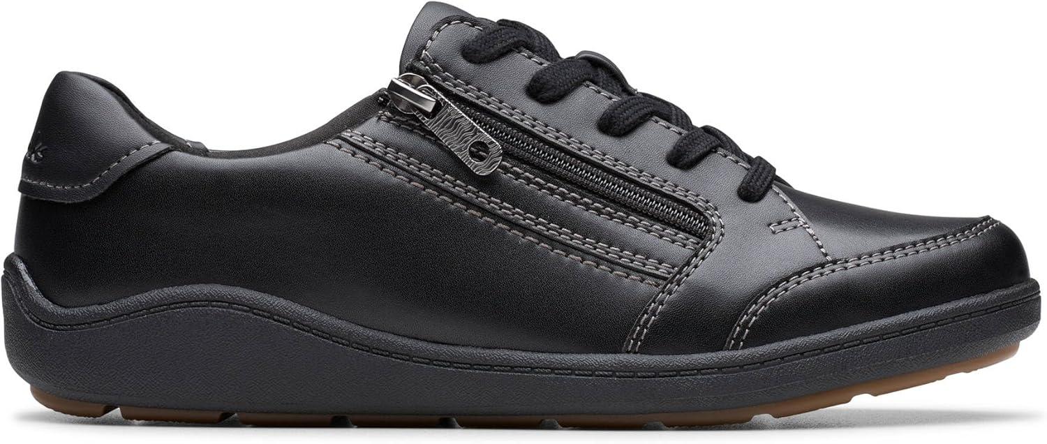 Clarks Women’s Bryianne Bayla Side-Zip Fashion Sneaker(Black Leather)