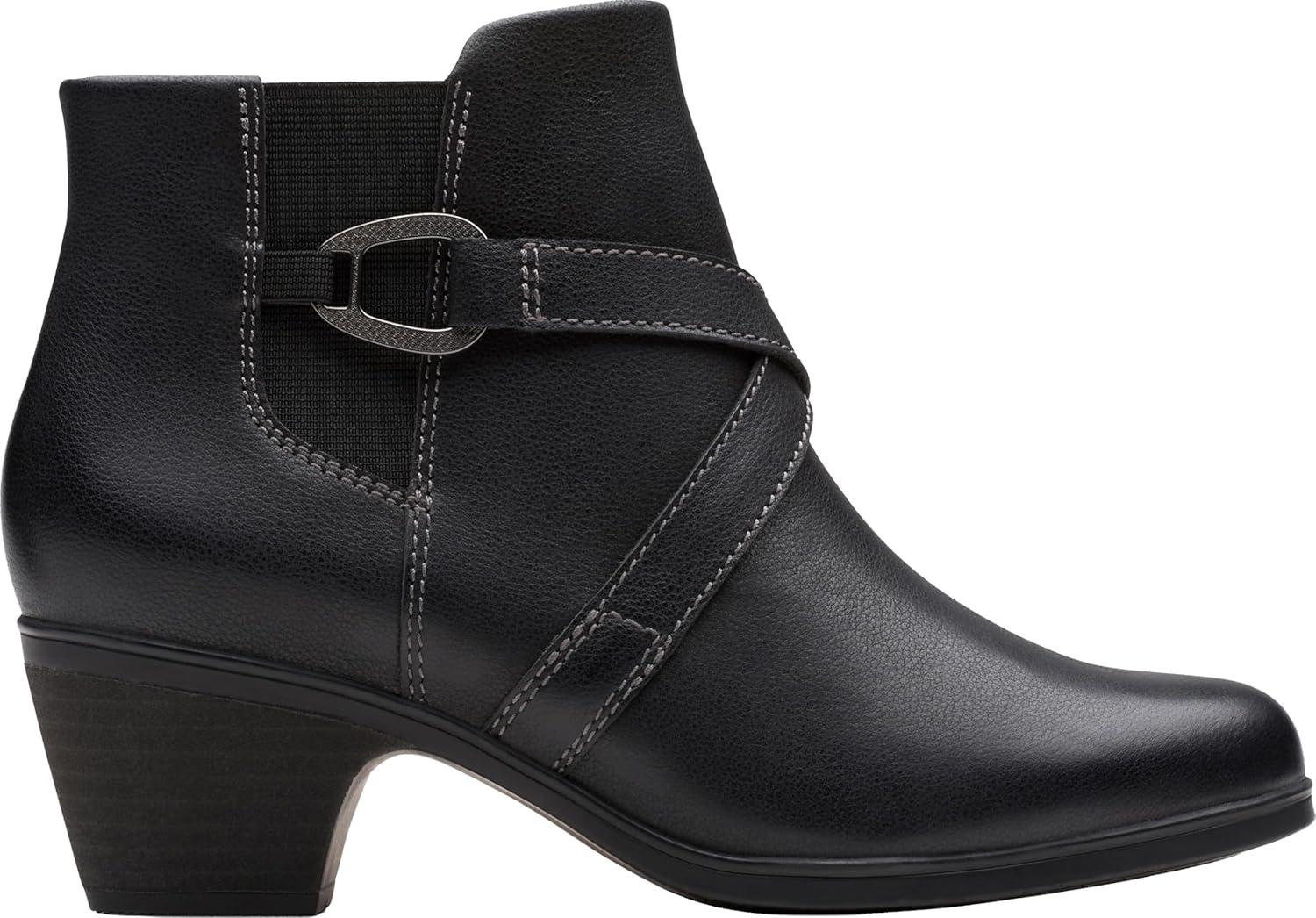 Clarks Women’s Emily2 Henley Leather Ankle Zip Bootie(Black Leather)