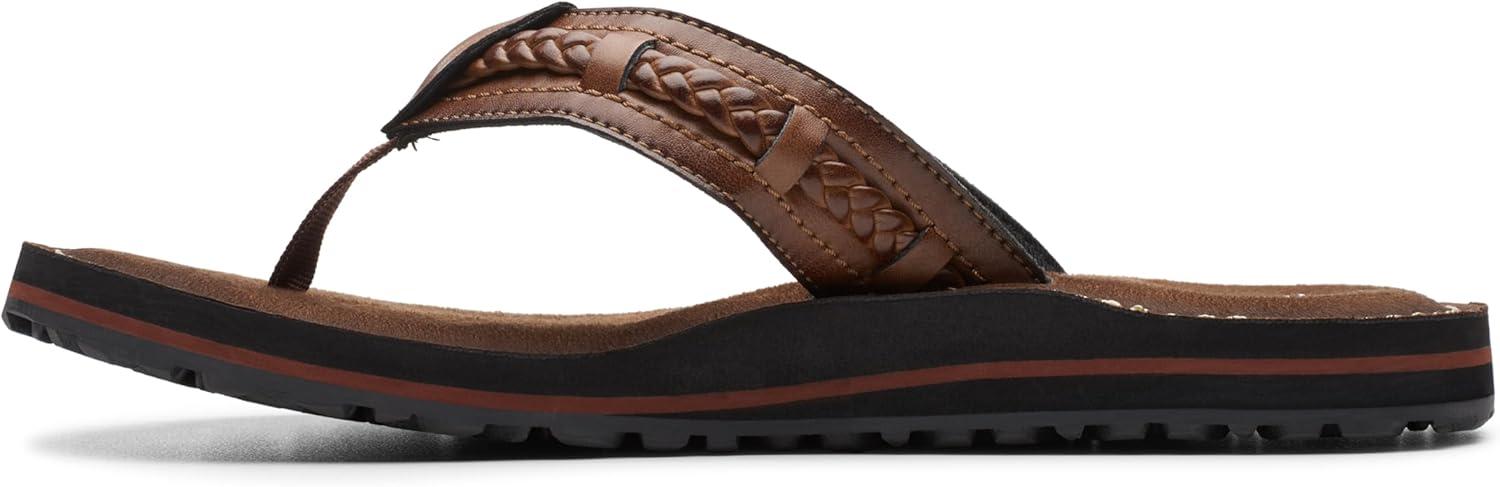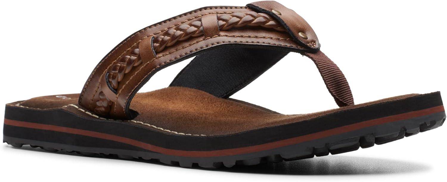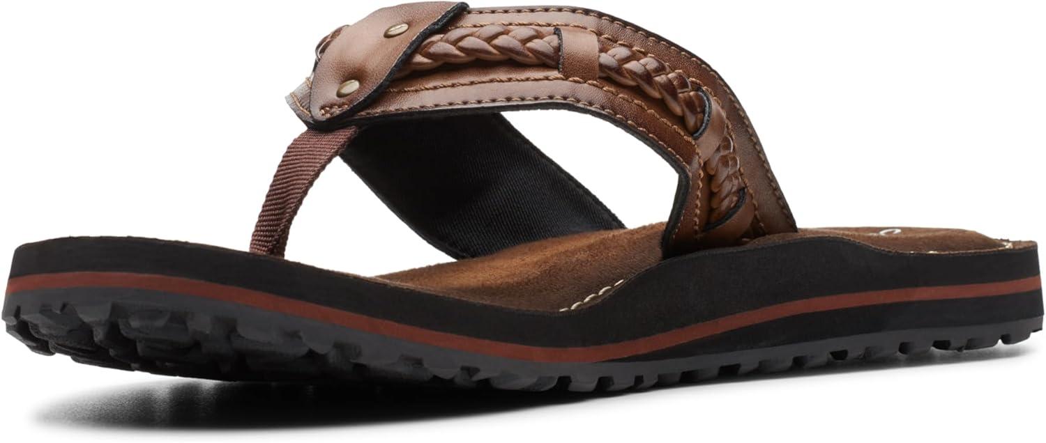 A carefree summer flip-flop with clarks collection aesthetics and comfort. made with honey synthetic straps with hardware accents, it pampers the foot with soft textile linings, a burnished eva footbed with cushion soft layers, and a tpr traction outsole. looks great with jeans, shorts or swimwear.