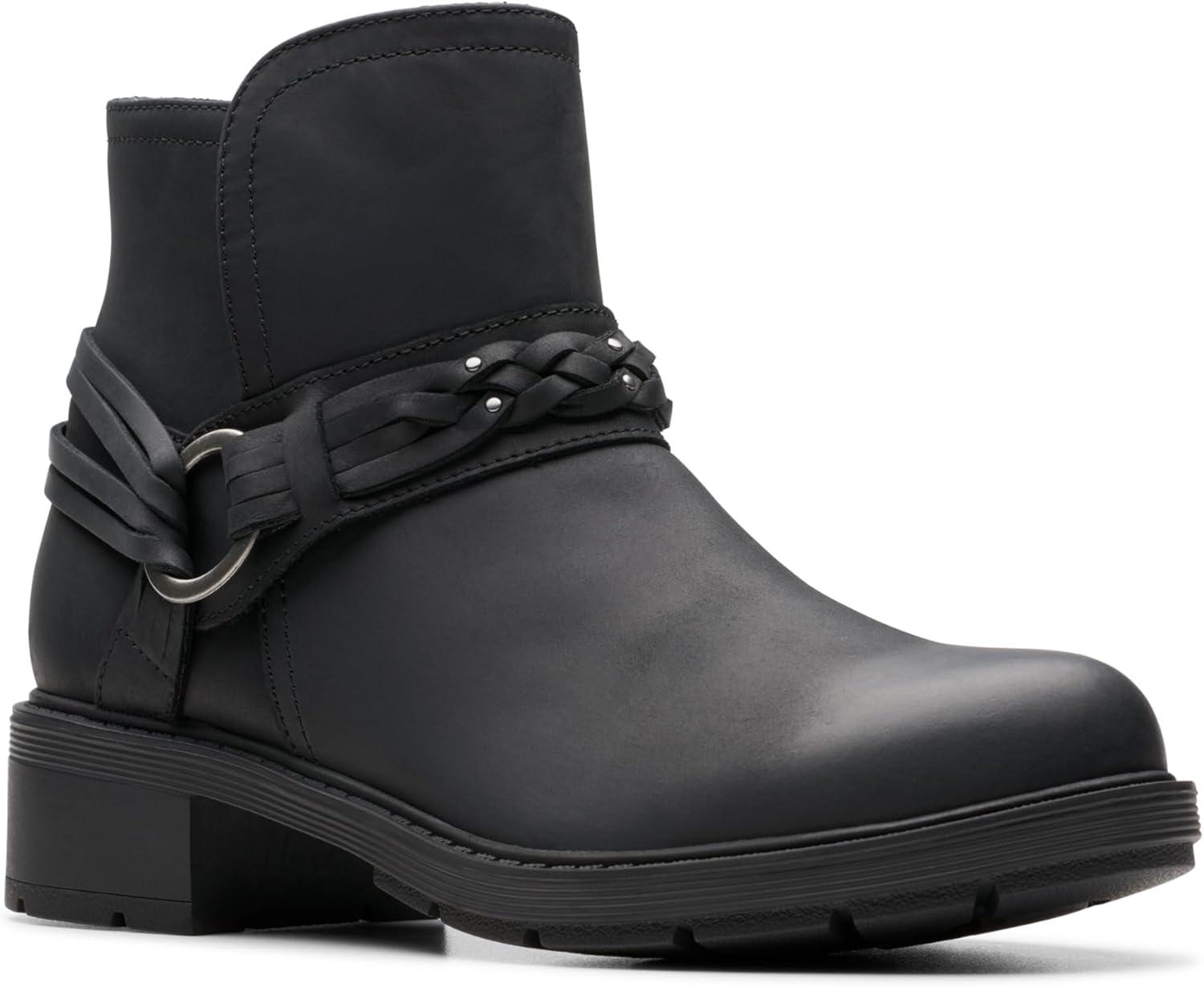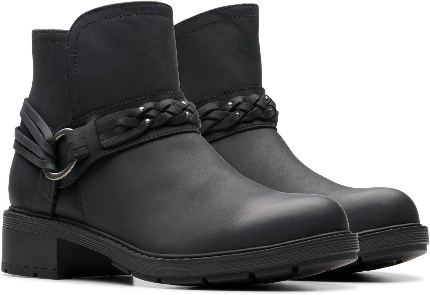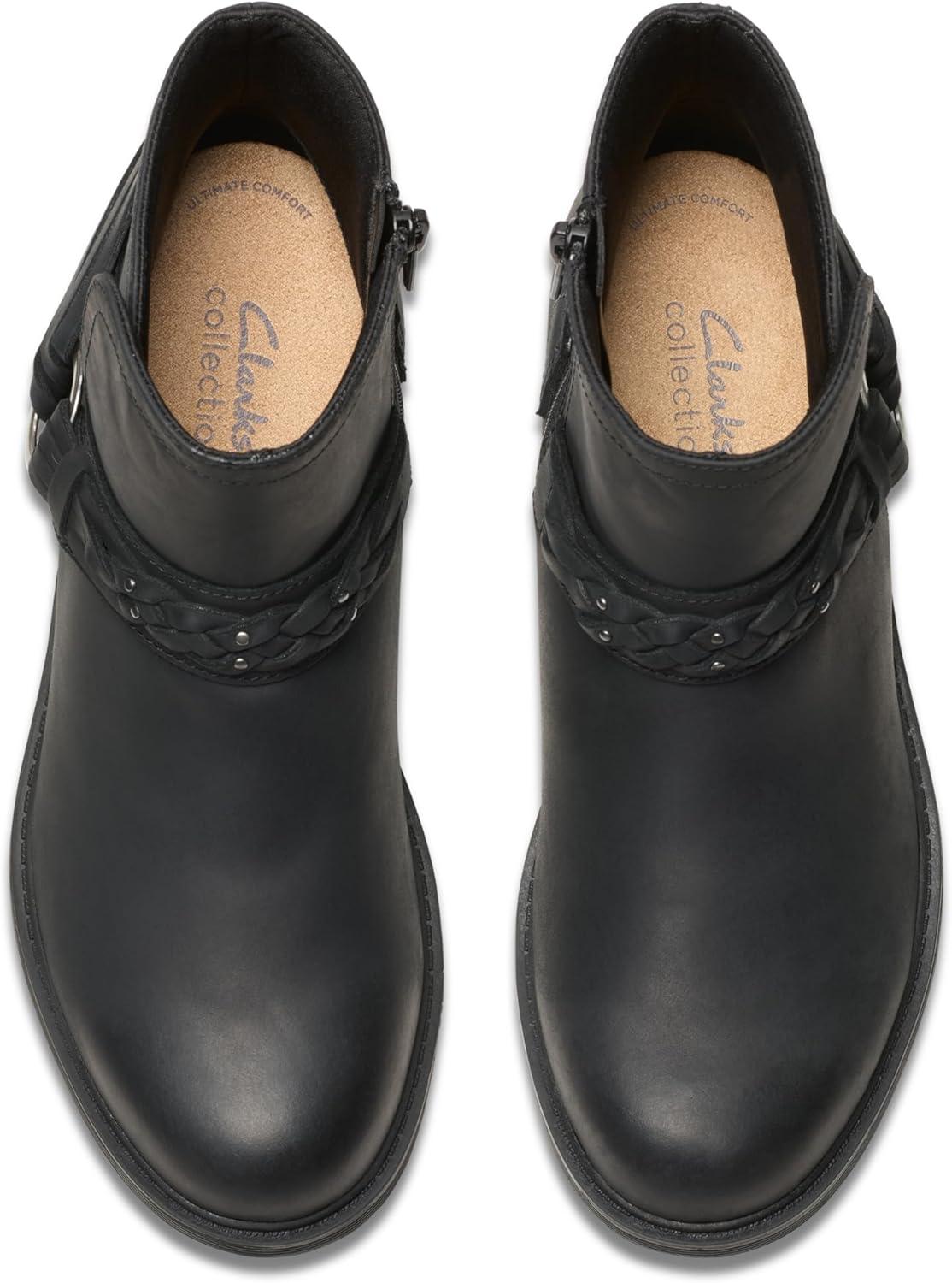 Clarks Women’s Hearth Kaylie Ankle Boot(Black Oily)