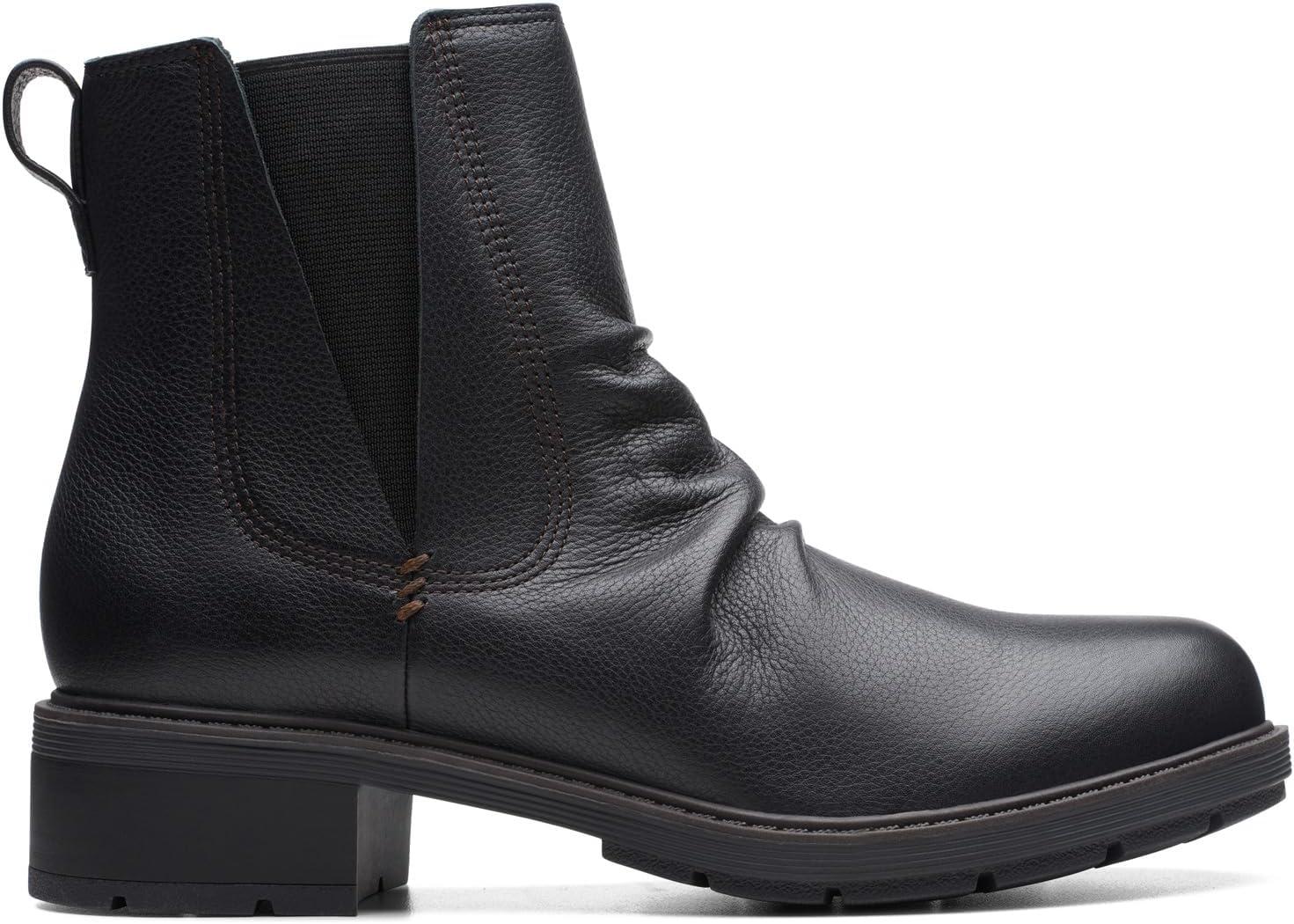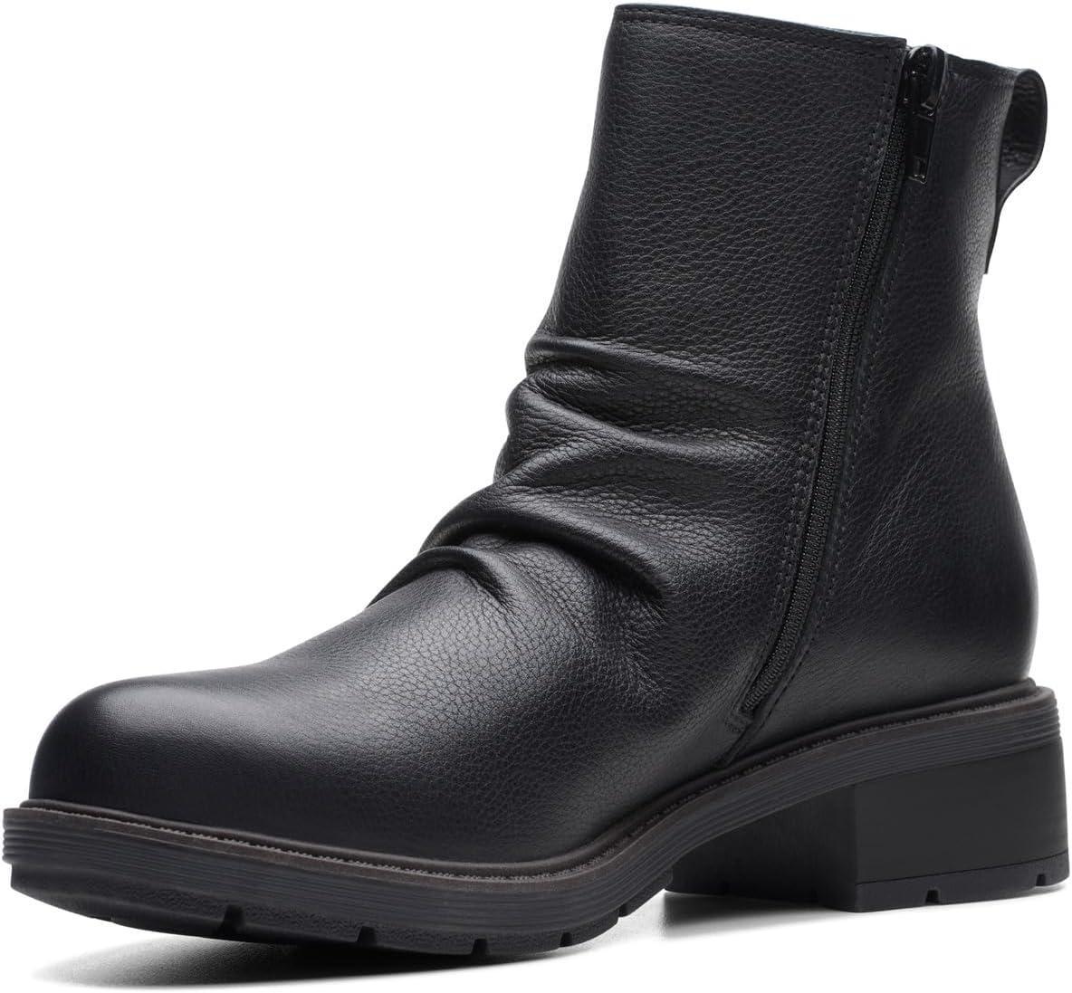Clarks Women’s Hearth Rose Mid Calf Boots(Black Leather)