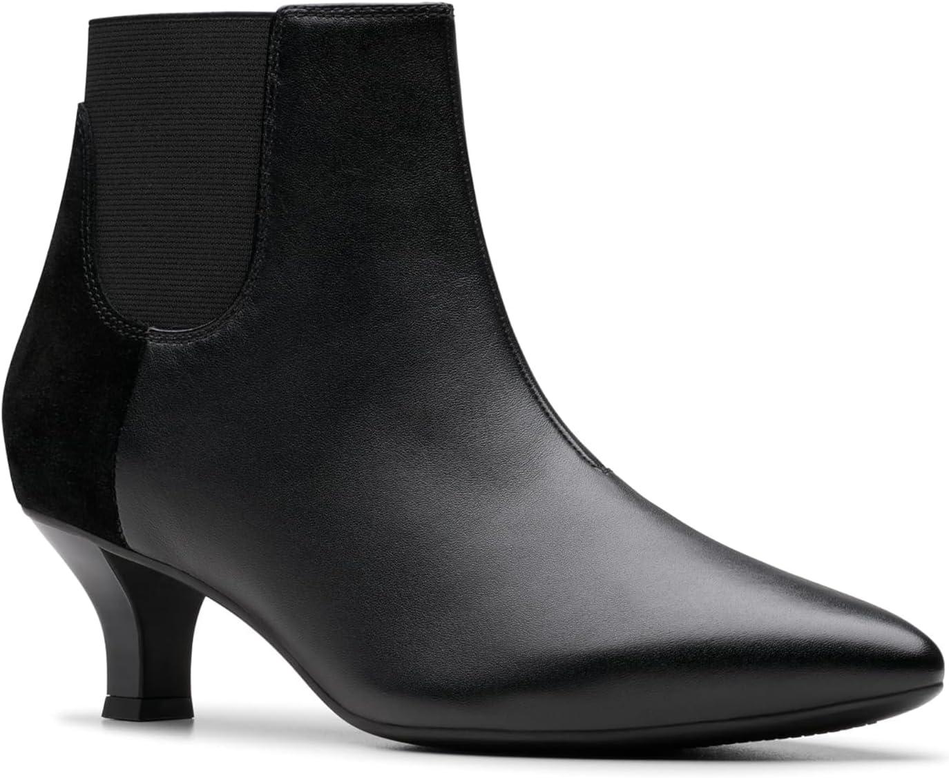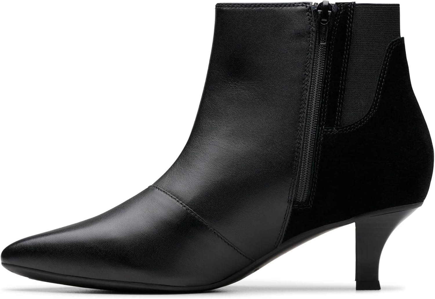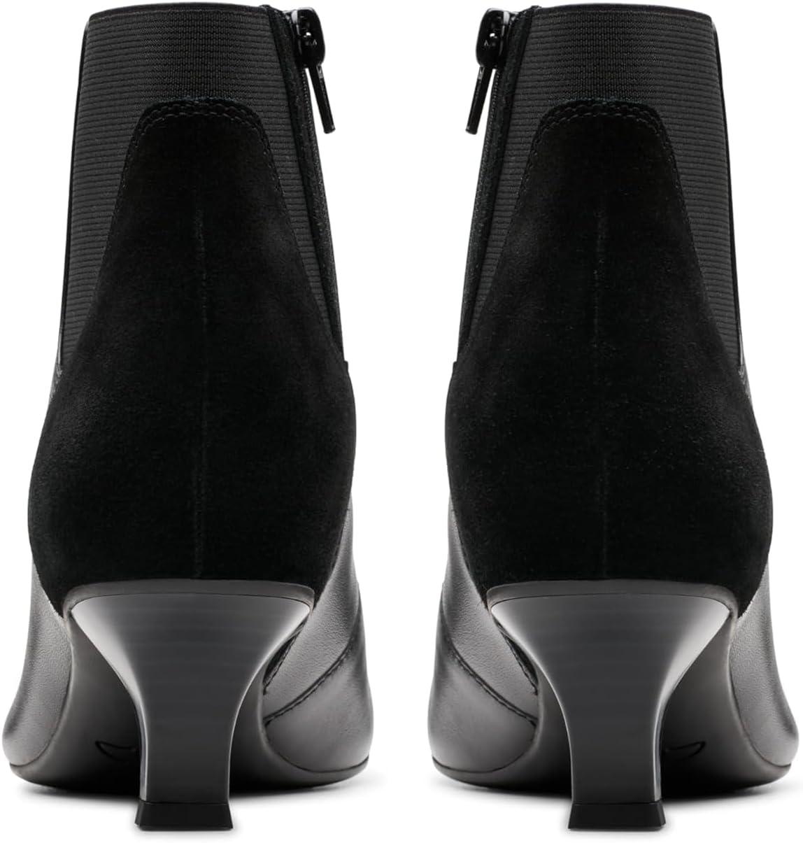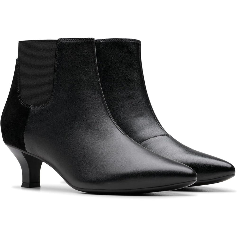 Dressing up date nights and days in the office, ankle boot Clarks Collection Kepley Erin arrives with a pointed toe for a sleek look. Soft cushioning balances dressy aesthetics with ultimate underfoot comfort, while a flexible outsole keeps up with whatever’s on your daily agenda. And with smooth uppers crafted from a blend of leather and suede, this pair is your go-to for elevated style. – Premium upper – Stretch panelling for easy on/off – Ultimate Comfort foam footbed delivers lasting cushioning – Smooth textile upper lining – Breathable microfibre footbed lining – Flexible TR (thermoplastic rubber) sole delivers ultimate underfoot traction – Heel height: 50mm